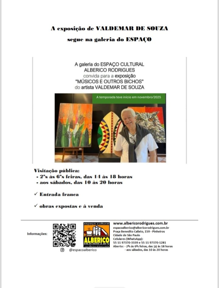 Exposição Valdemar De Souza Alberico2026-02-27T09:57:09-03:00 Compartilhe em sua rede preferida! FacebookTwitterLinkedInRedditWhatsappGoogle+TumblrPinterestEmail